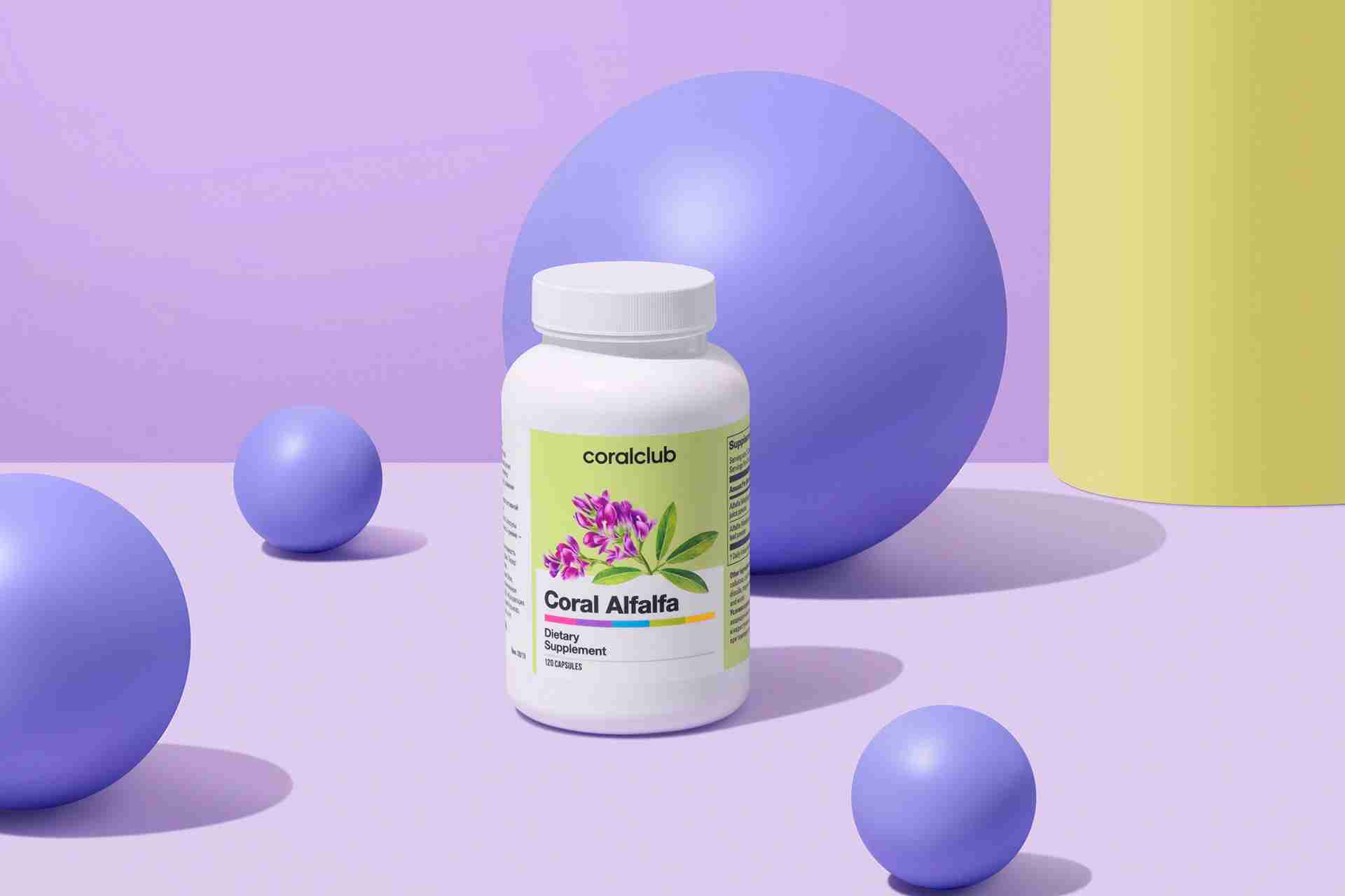 Уникальное растение семейства бобовых с богатым составом биоактивных веществ (эссенциальные аминокислоты, витамины А, группа В, D, E и К, минералы кальций, железо, калий, магний, хлорофилл, сапонины, изофлавоны и флавоноиды). Благодаря сапонинам люцерна снижает в организме уровень холестерина, улучшает состояние сосудов. Люцерна содержит много хлорофилла, который легко и быстро усваивается, обогащая кровь кислородом, вместе с белком способствует восстановлению слизистых ЖКТ. Это одно из редких растений, содержащих фтор, который предохраняет зубы от кариеса. Изофлавоны обладают эстрогеноподобной активностью, поэтому люцерна полезна женщинам в период менопаузы.